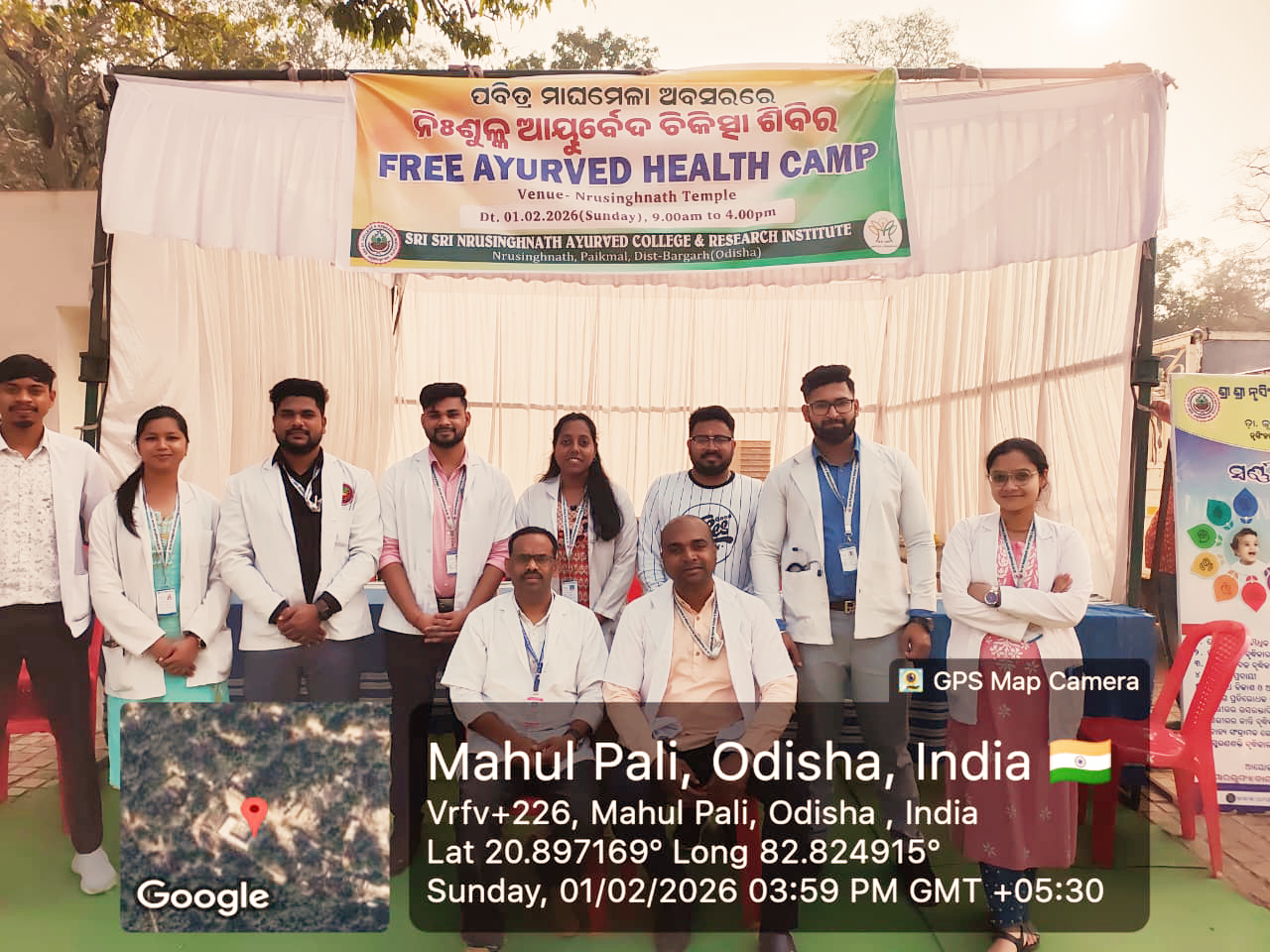 On the auspicious occasion of Pavitra Magha Mela, our institute organised a free Ayurveda Health camp at Sri Sri Nrusinghanath Temple to extend healthcare services for the devotees. A total of 150 devotees benefitted from this camp. Free consultations along with free medicines distribution were provided to all the devotees who attended the camp.